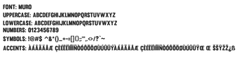Muro é uma família de tipografia projetada para chamar a atenção, com formas geométricas fortes e uma estrutura robusta. Os traços espessos e as bordas limpas conferem um ar moderno e industrial, enquanto os cortes angulares sutis adicionam energia dinâmica. A variação inclinada traz um senso de movimento, ideal para criar títulos ou logotipos que transmitam velocidade e inovação. Com um design sem serifa e espaçamento compacto, Muro é perfeito para branding, pôsteres, embalagens e títulos editoriais onde clareza e ousadia são essenciais.